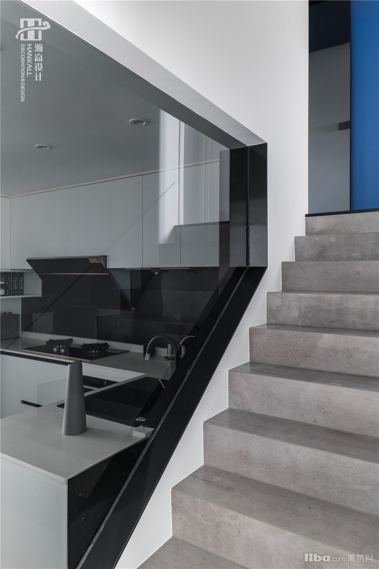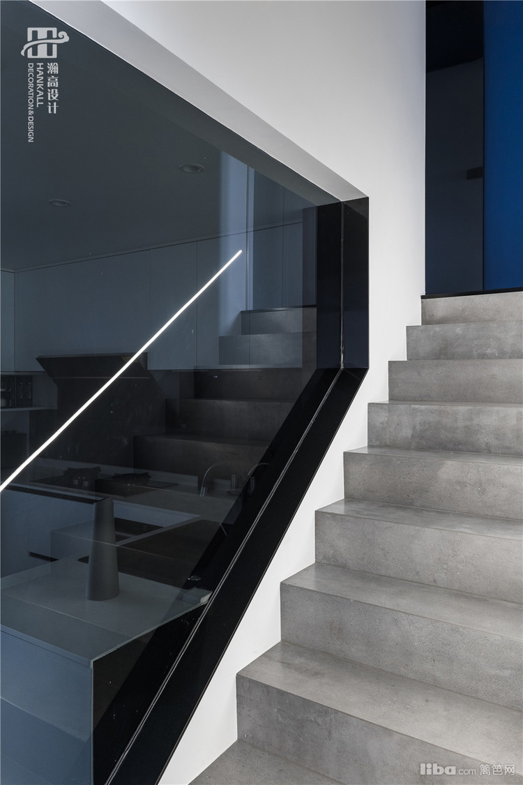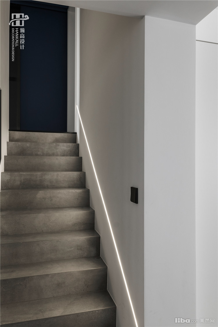 以黑白灰的视像,间以深邃的蓝色点缀,呈现出极致纯粹的极简氛围,将艺术修养藏匿于空间内涵之中