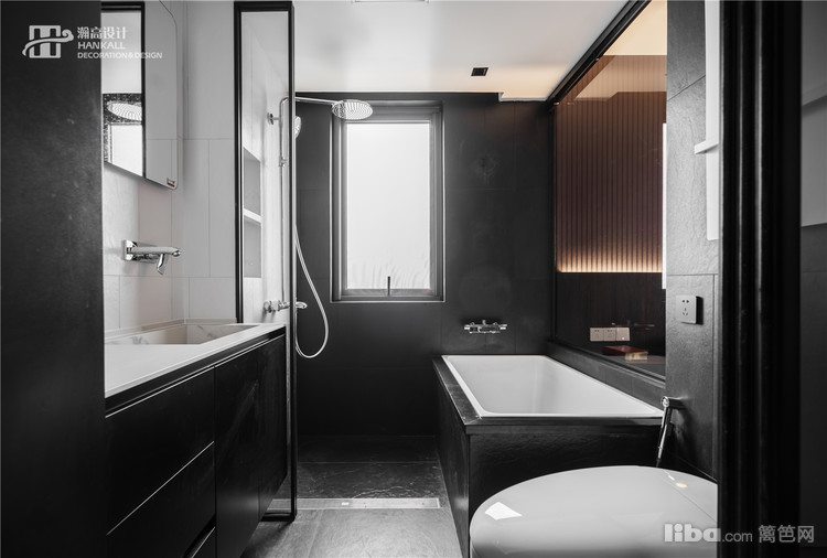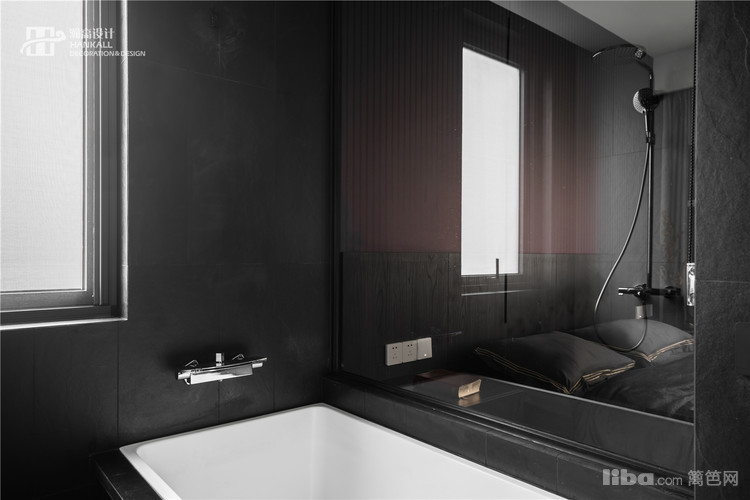 主卫内置于主卧中,并保持了色彩的高度统一。在这里,黑色是安静的,默默伫立着,积蓄雄浑饱满的力量。