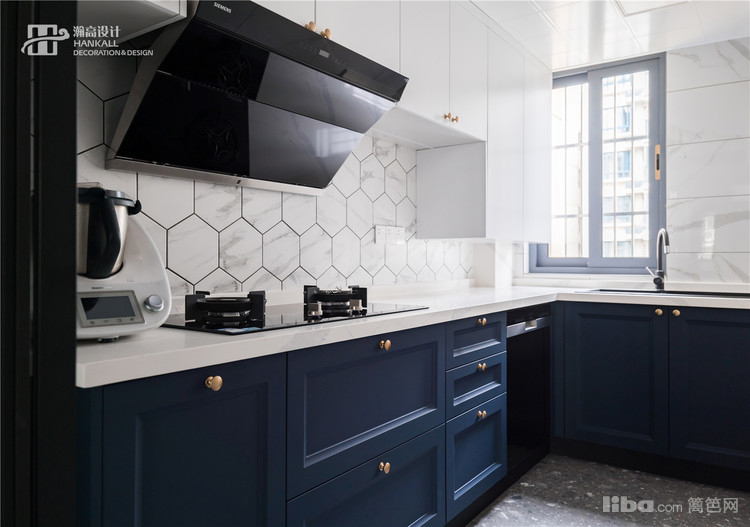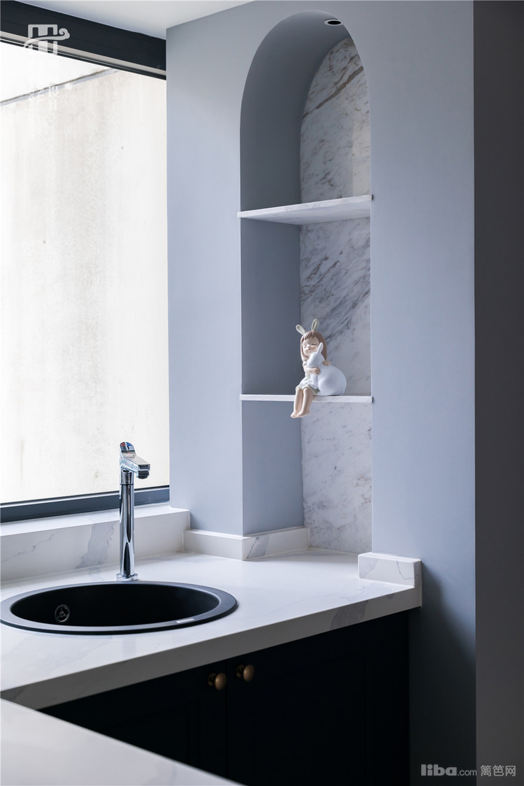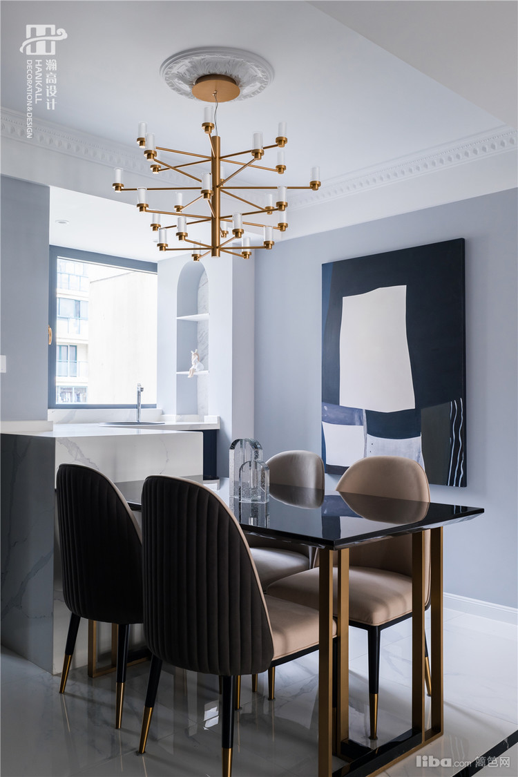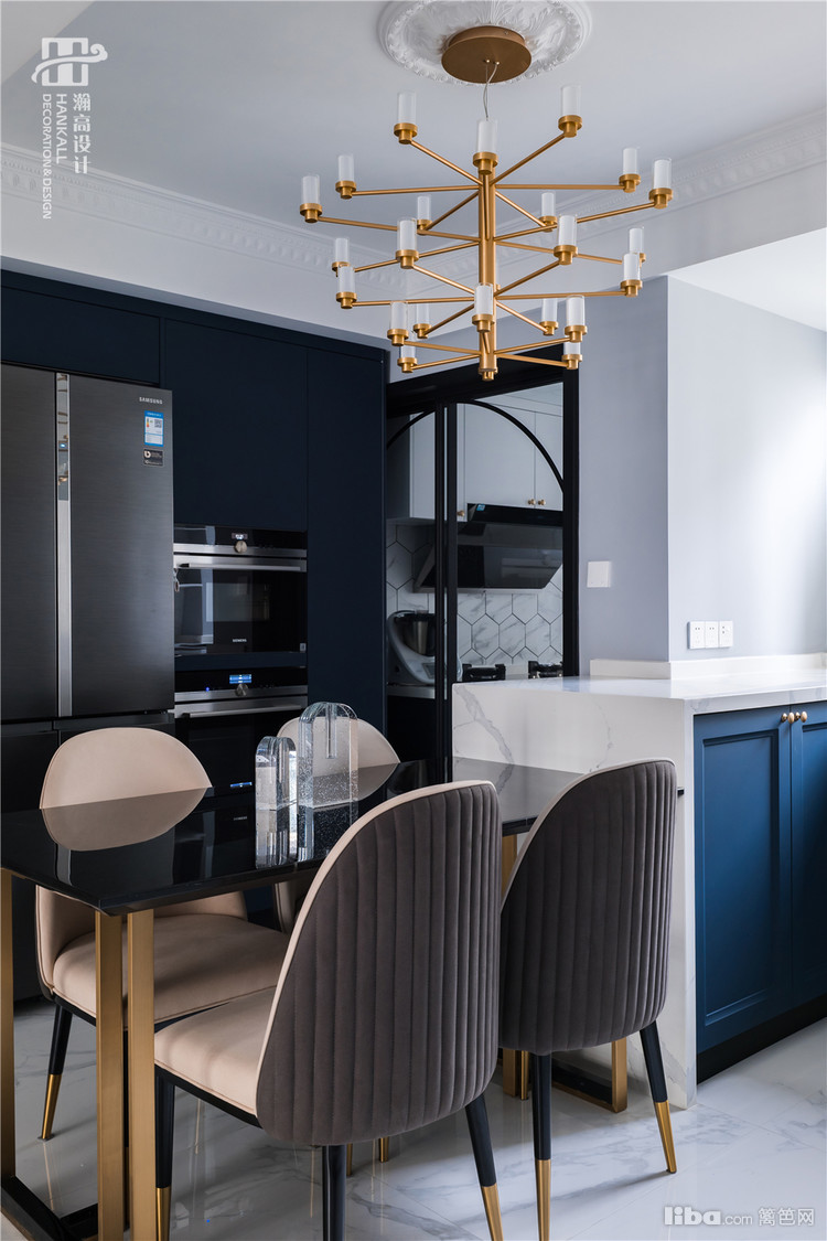 我们将餐厅与北阳台打通,利用西厨的吧台设计,将餐厅与阳台合二为一,冰箱和厨电设备移至餐厅,把厨房完完全全的交给中厨,满足了屋主中西分厨的需求。