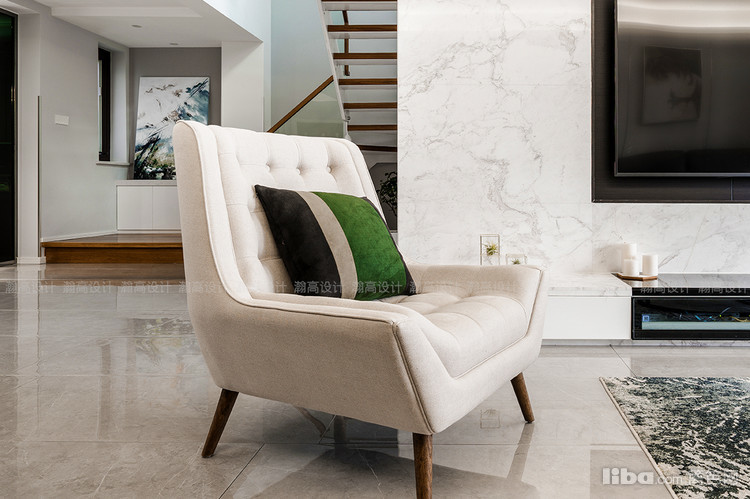 设计师巧妙的结合了大理石、真皮、实木和绒布等不同材质,并通过其纹理和色彩,以及形式的内在力量,演绎出了独特的运用在同一个空间,凸显起独特的休闲空间。