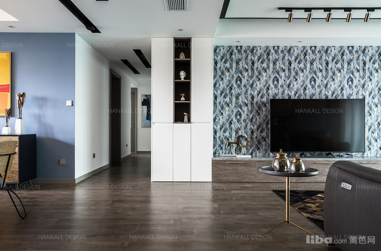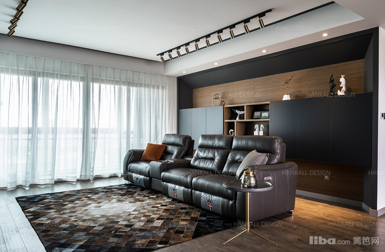 有一个视听效果俱佳的客厅,和一些摆放私藏的收纳柜,空间尽可能的开放,流通自然。