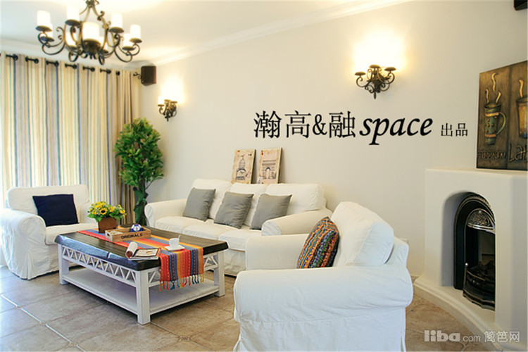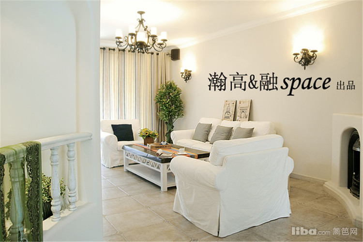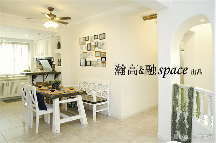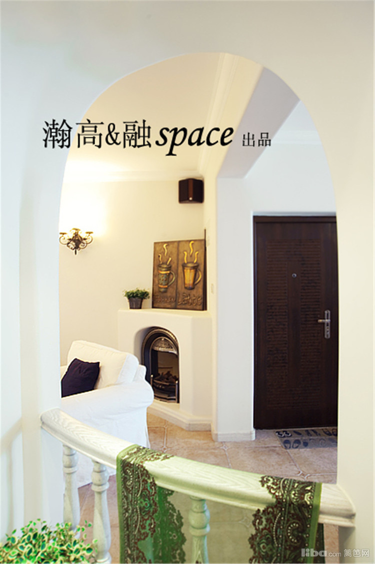 白色为主的主墙面,圆弧门洞造型,栏杆扶手的点缀,壁炉造型烘托