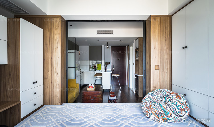 通过整屋定制的手法,打造出一个色彩统一的现代空间。置入古色古香的古典元素,感受古典与现代混搭的格调。