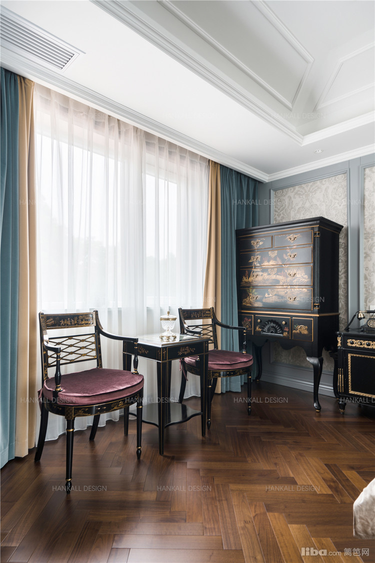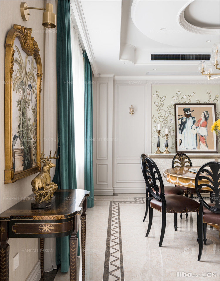 缀满了中国元素的精致装饰和复杂的雕刻线条的法式相搭配