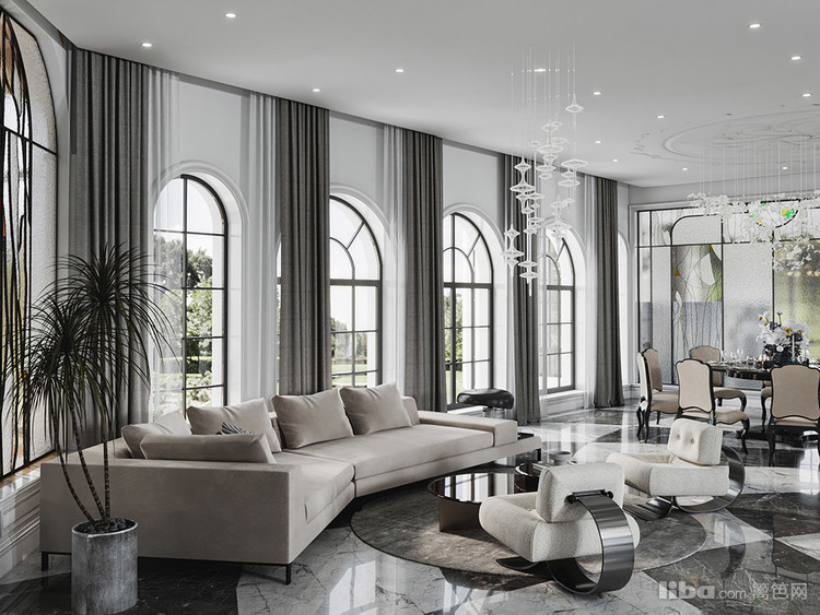 包含的空间区域:一楼入户玄关、楼梯厅;二楼休息区、衣帽间、楼梯厅。