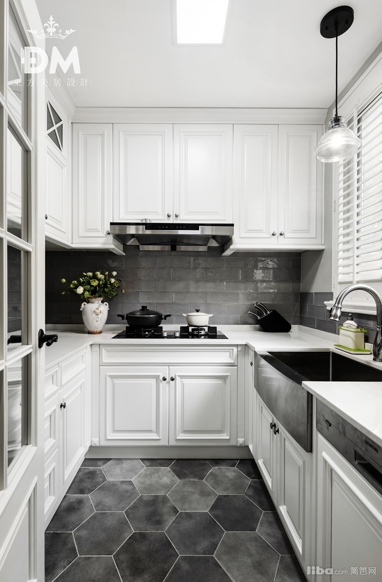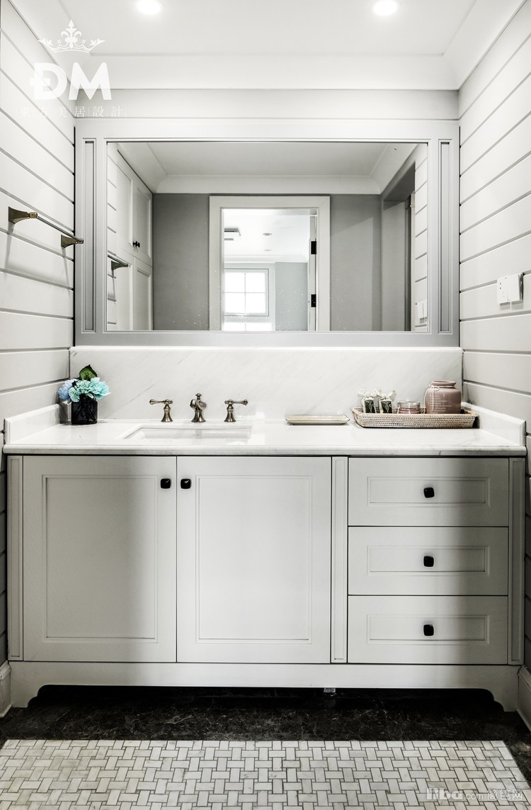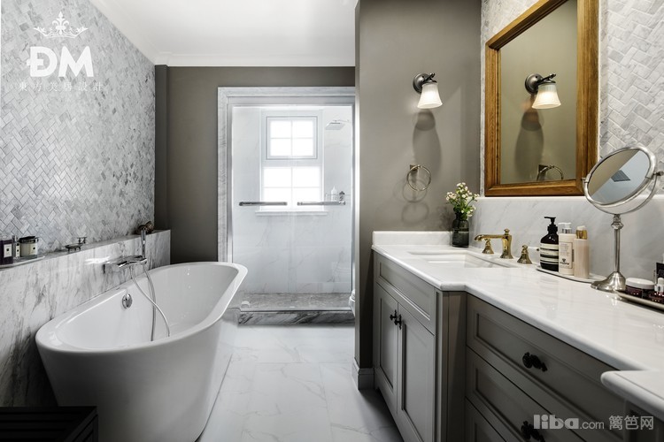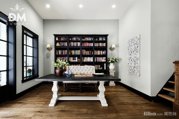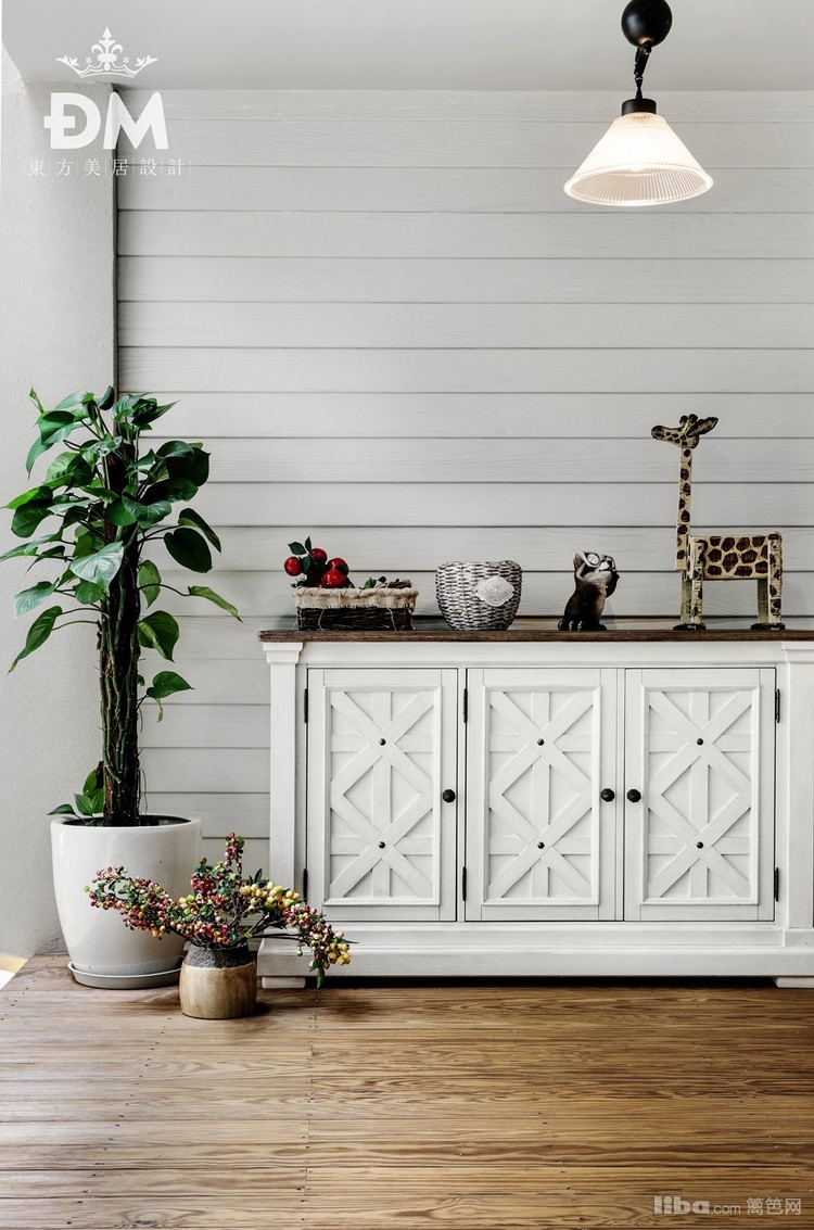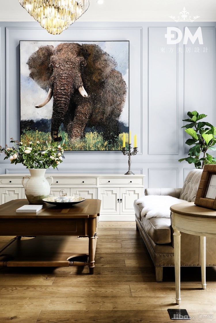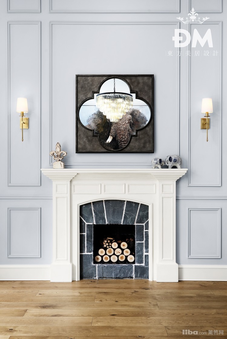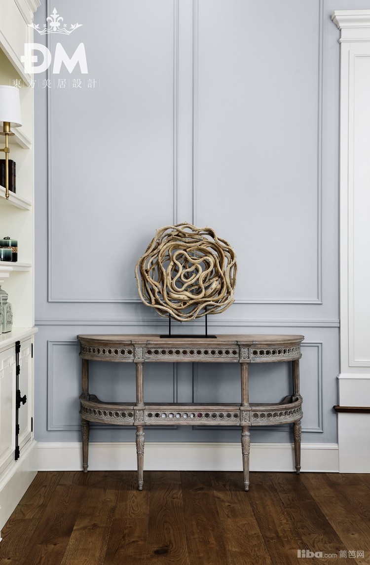简美——简约+美式,采用淡蓝色的石膏线装饰墙体,颜色比较清新淡雅,符合业主的性格,吊顶简单,不繁重