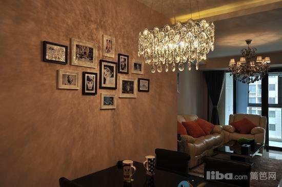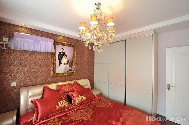 简约的壁纸墙面加上水晶灯营造温馨的氛围。