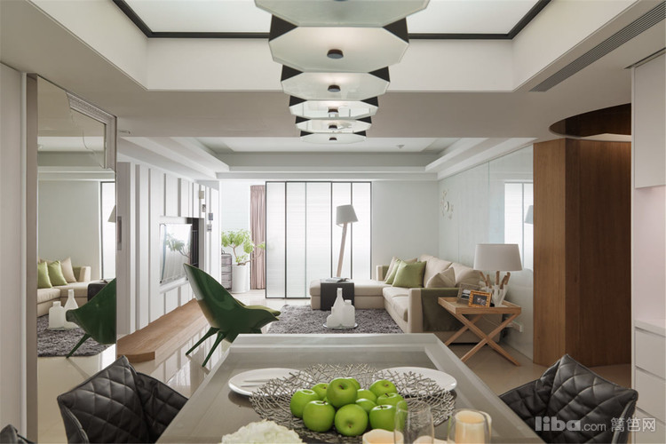 现代简约风格在处理空间方面一般强调室内空间宽敞、内外通透,在空间平面设计中追求不受承重墙限制的自由