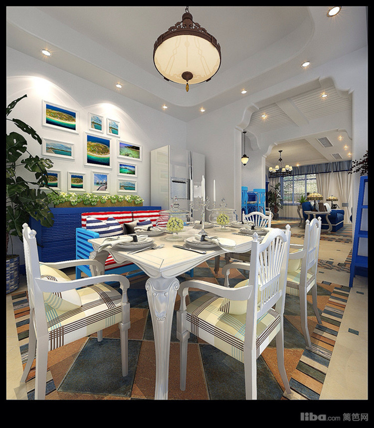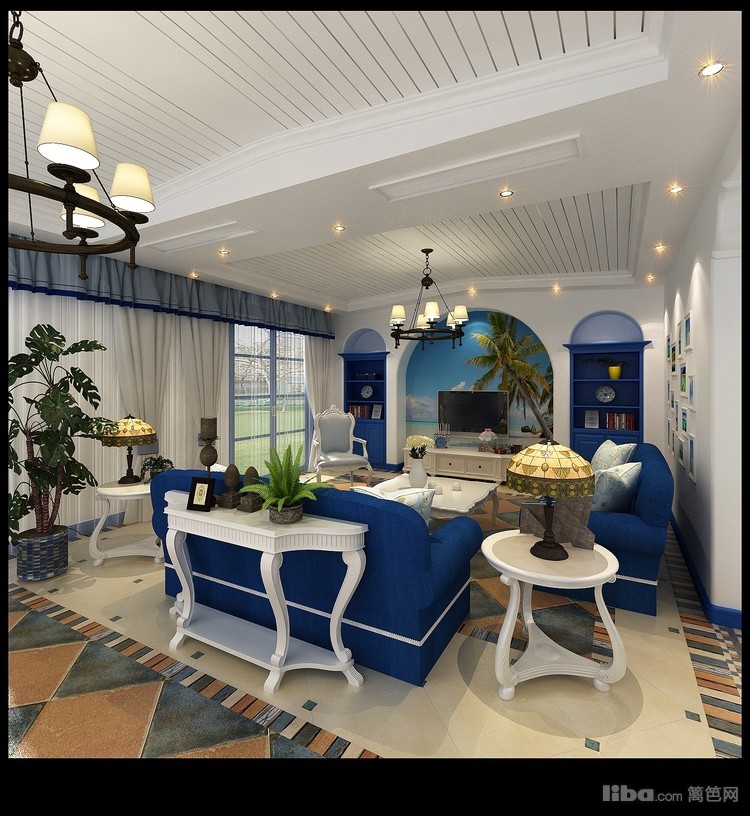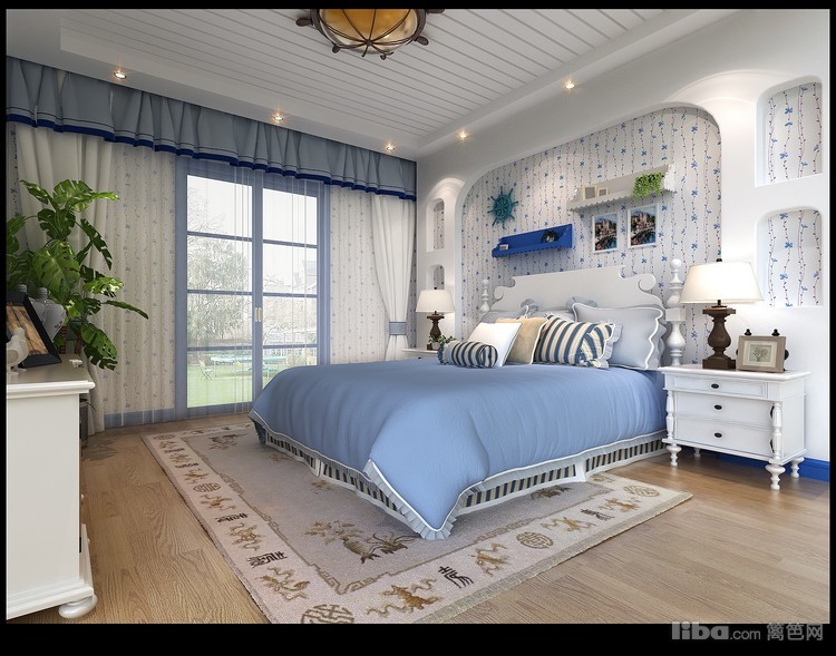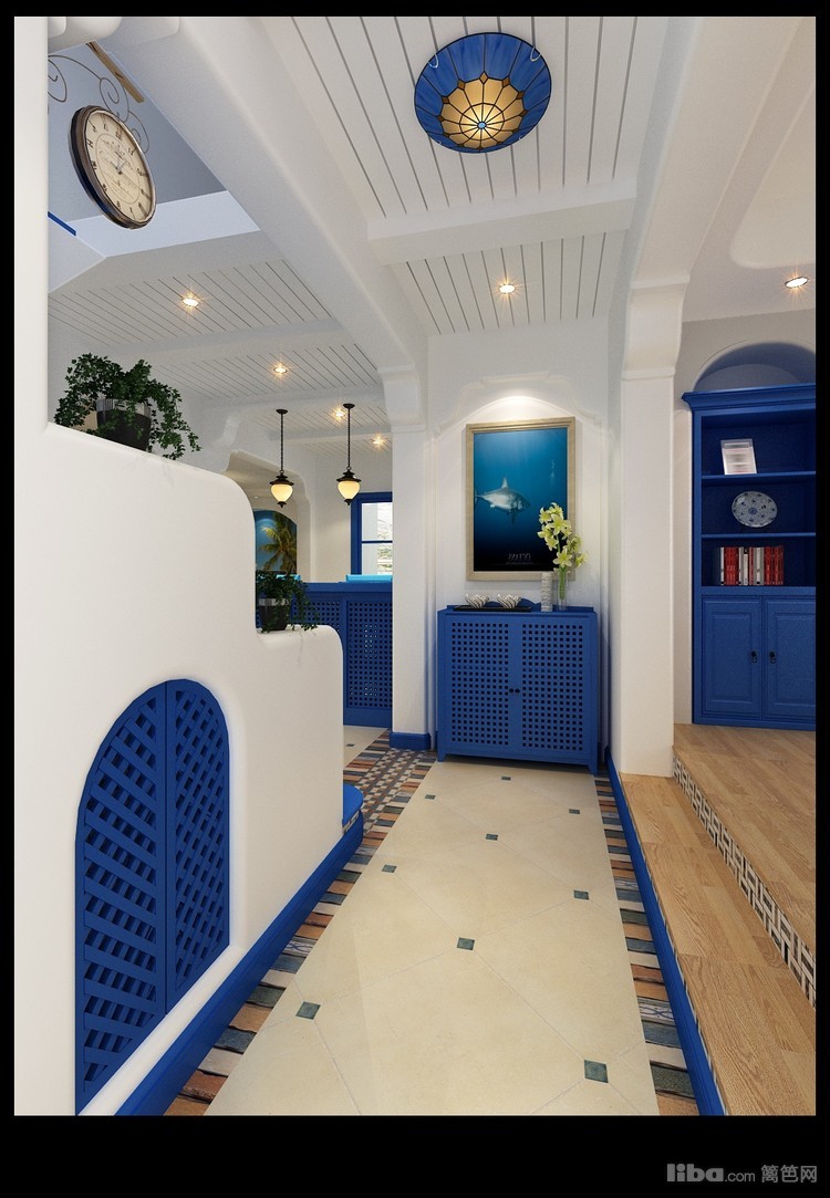 拱形的浪漫空间是地中海的建筑特色,纯美色彩搭 配是体现地中海的最大魅力蓝色家具采用让整个空间清新自然