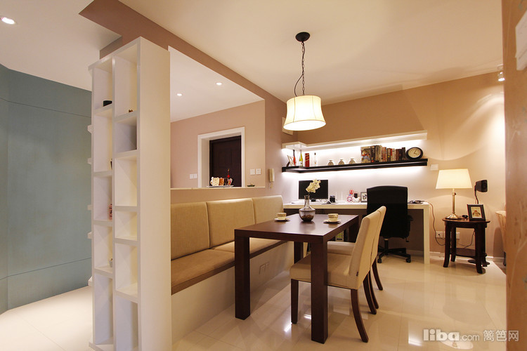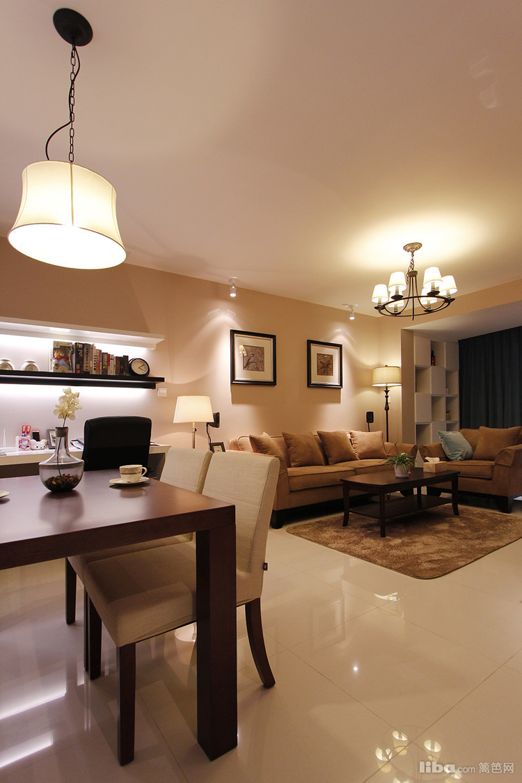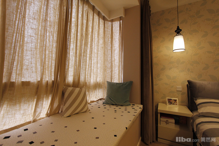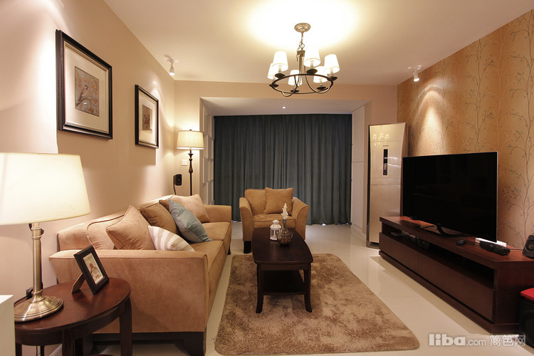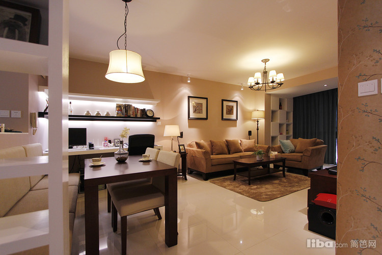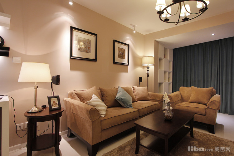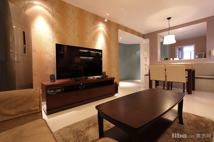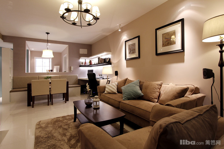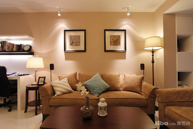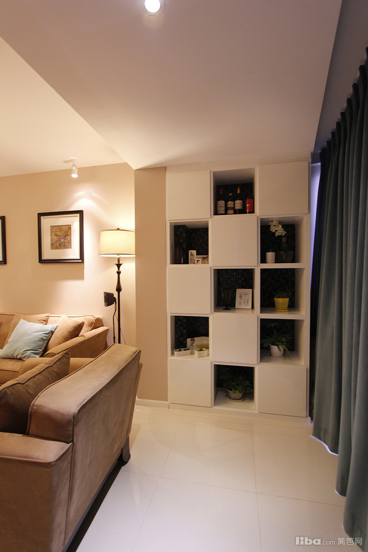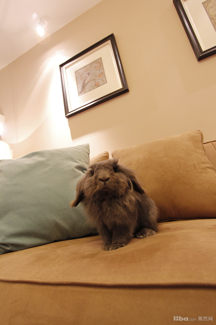 客厅业主要求地砖,家有养兔子,阳台纳入客厅范围,大大的提高了客厅的兼容性,整个设计硬装很简单,靠软装去美化家