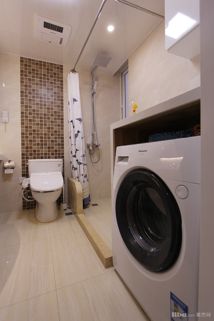 不用淋浴屏的卫生间看起来很大,挡水的设计避免水外溅出来,省力的好方法