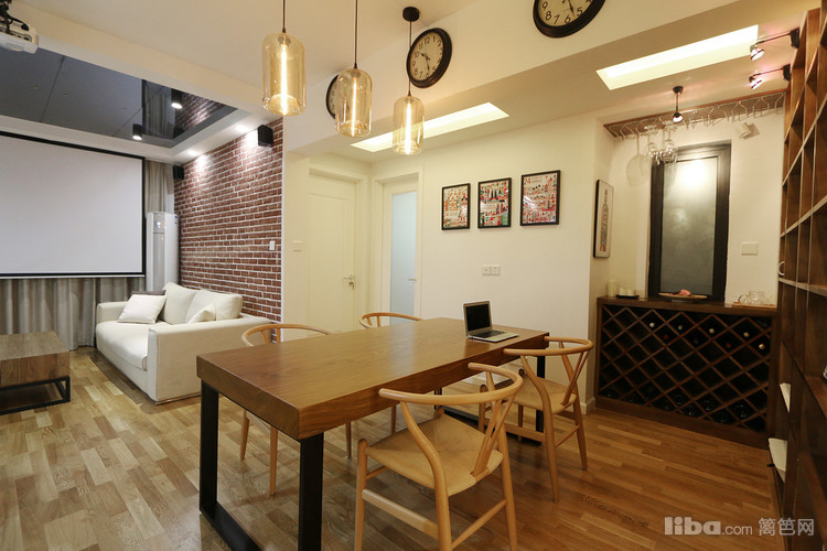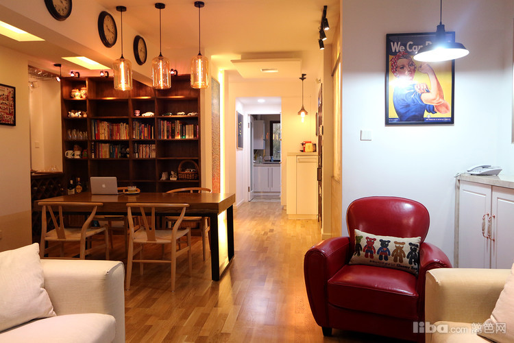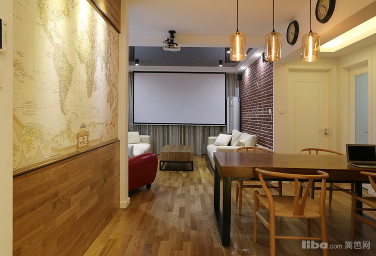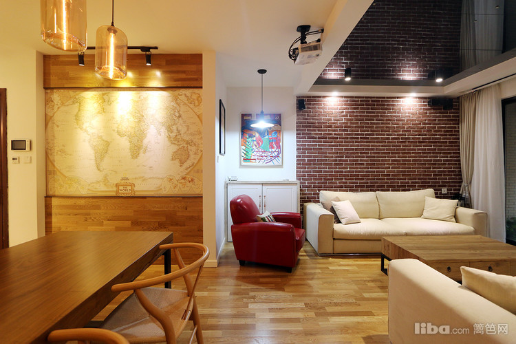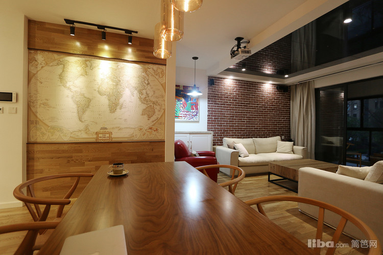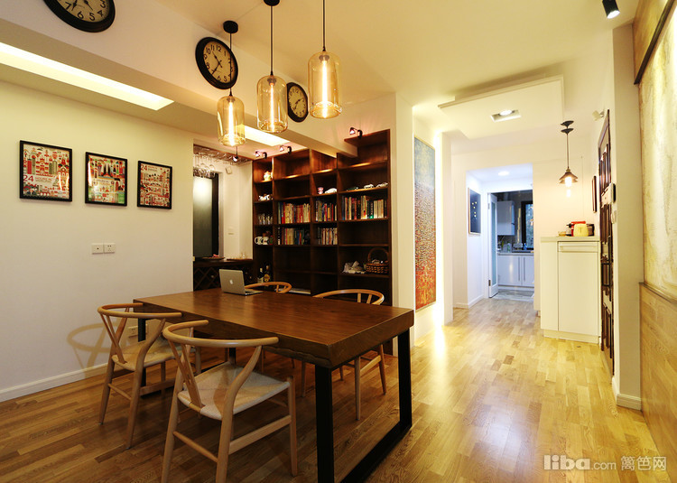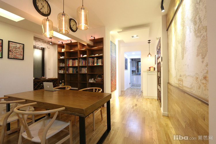 餐厅,原木—地图墙纸—房梁—仿古圆盘钟,搭配的绝了,如果你也喜欢整块的原木,不妨也去南方挑一块木头回来加工一下桌脚就可以了,据说这种木头有升值空间,且不管那么多,喜欢这种感觉就好~