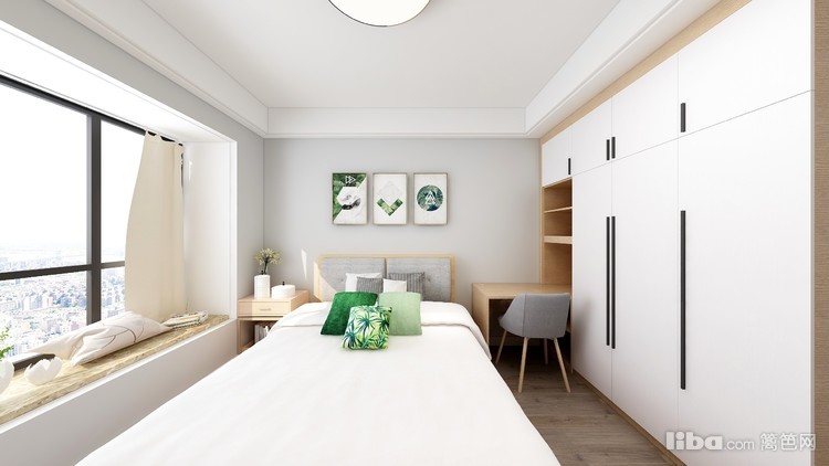 卧室做了飘窗 充足的光线加上浅色的基调 整体视觉感的扩大 简单大气 。