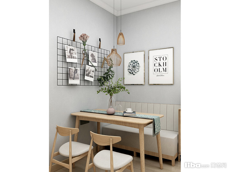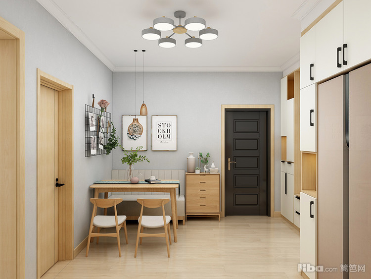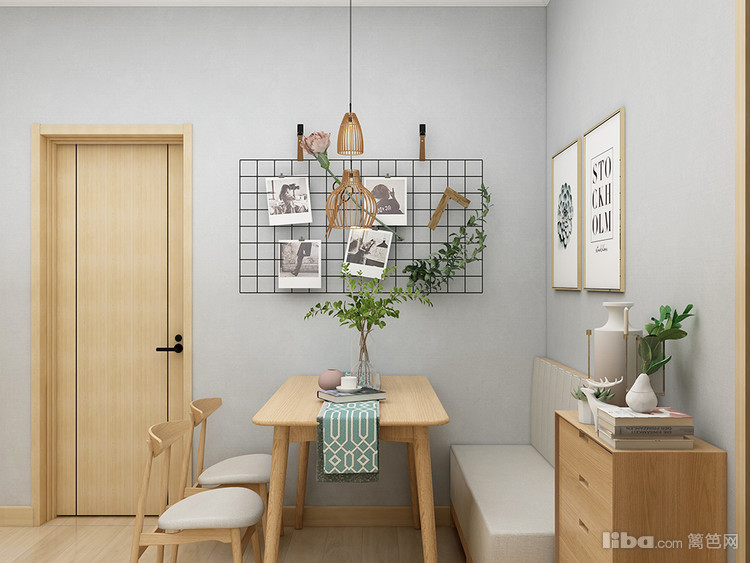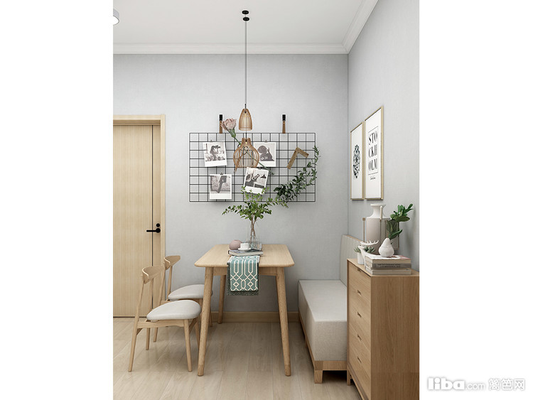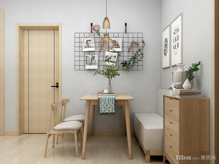 餐厅区域同样采用原木色系桌椅 以及餐边柜 整体呼应协调。