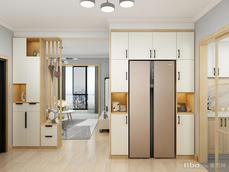 厨房以白色和原木色相搭配,做得收纳比较多,方便东西的摆放。