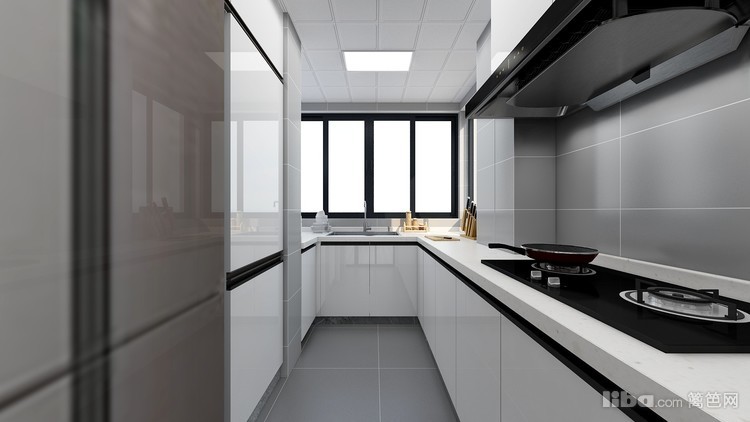 厨房黑白灰的色调搭配 只做了下柜的橱柜 方便碗筷的摆放 东西的收纳。