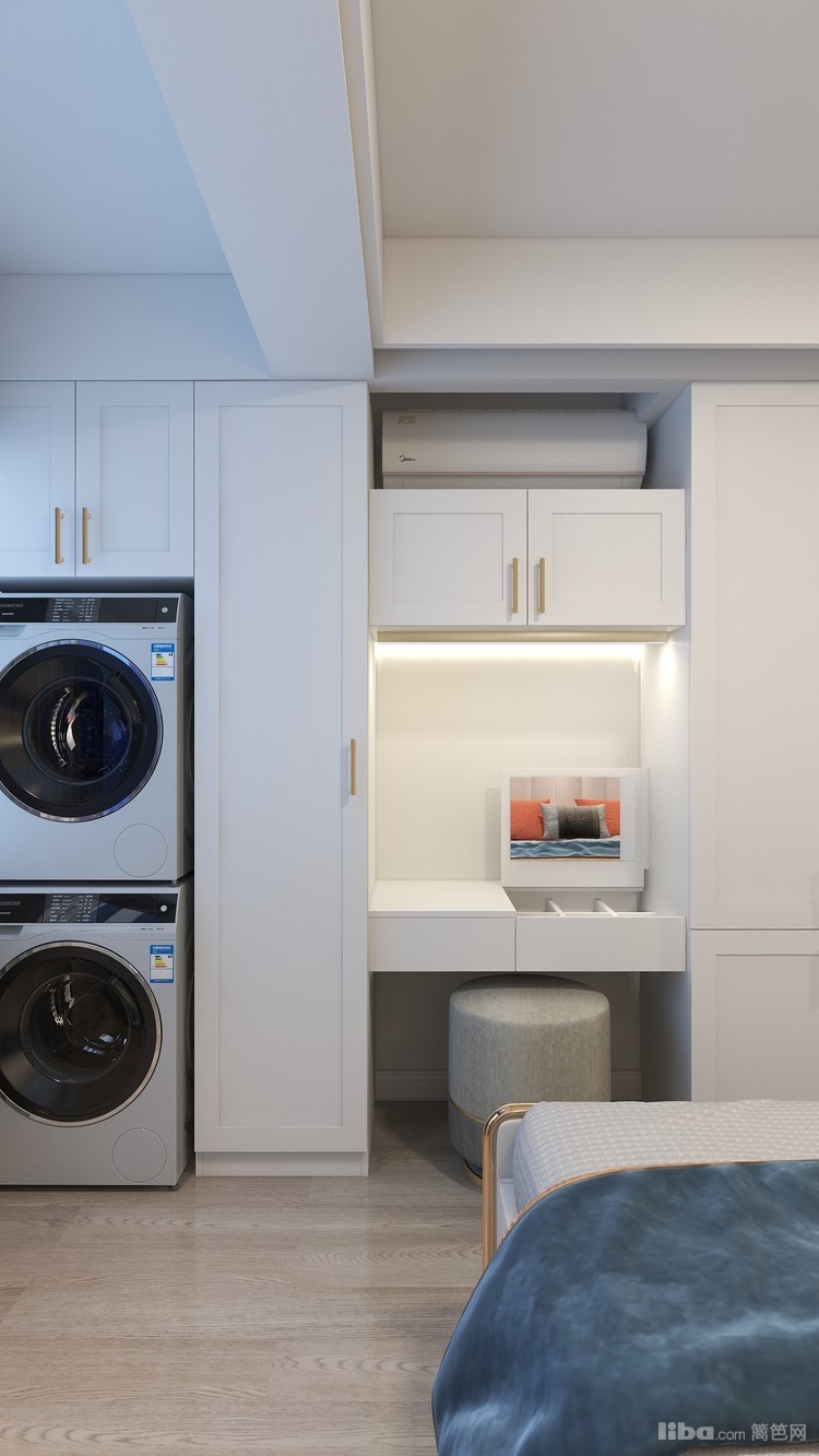 卧室带阳台 做得推拉门 增强整体的空间感,柜子收纳与梳妆台相融合,整体浅色调 床上亮眼的窗套作为点缀 温馨又不失活泼。