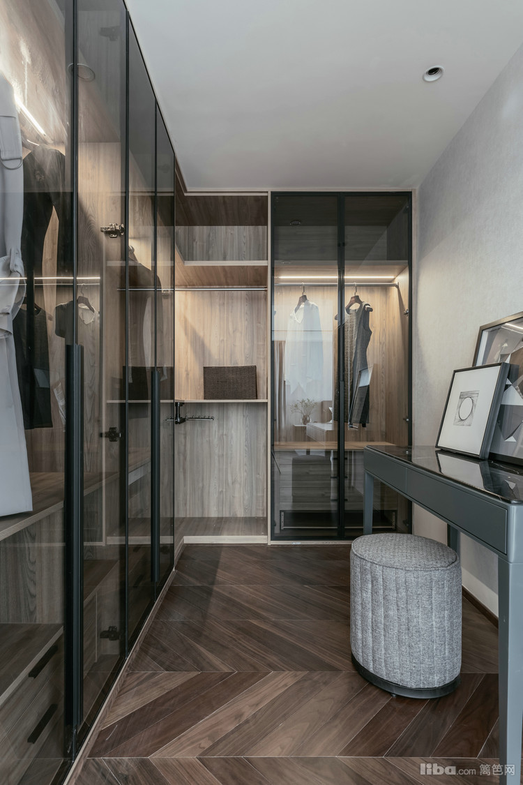 风格:现代风格,不喜欢太死板的黑白灰,要有变化和节奏。 衣服首饰很多,需要有独立的衣帽间融合化妆台