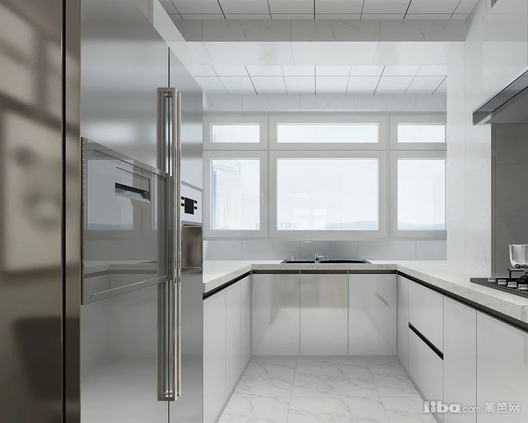 厨房原来没有那么大,因为把北阳台拆掉扩进厨房里,所以厨房空间变得很宽敞,橱柜也是采用的烤漆门板,简约大方。
