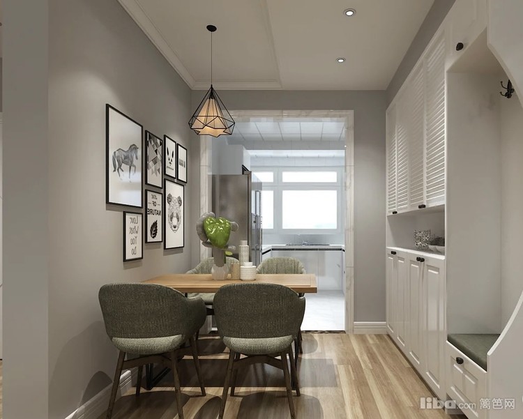 餐厅原来没有那么大,因为把北阳台拆掉扩进厨房里,所以餐厅跟着厨房空间变得很宽敞。
