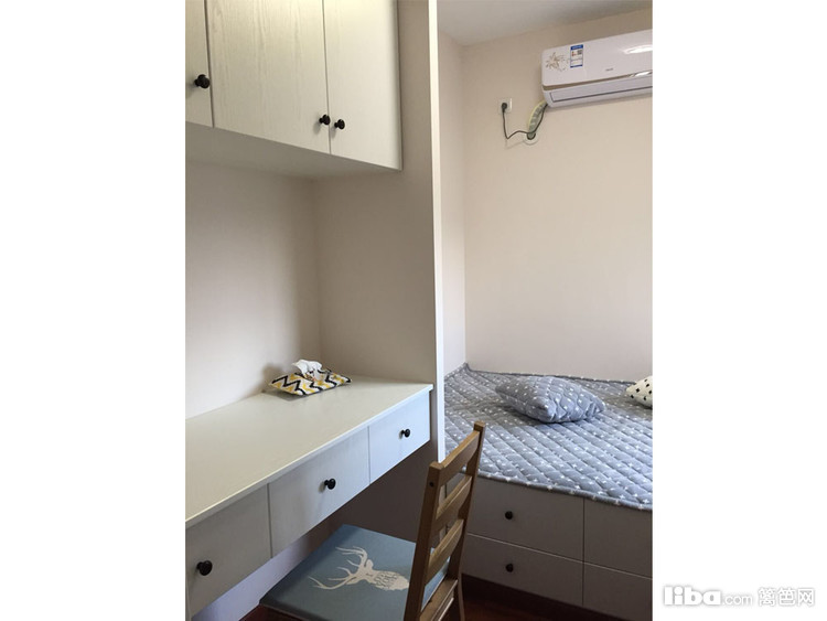 次卧榻榻米书桌衣柜整体设计,兼备储物功能。