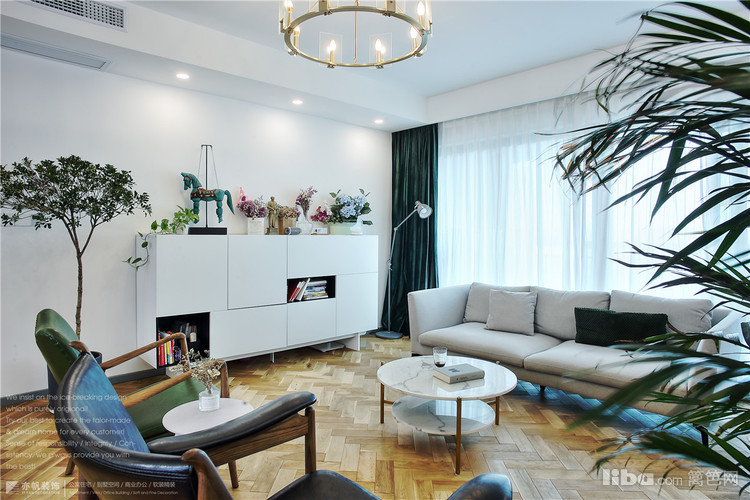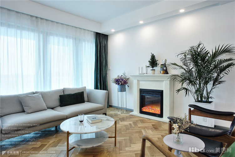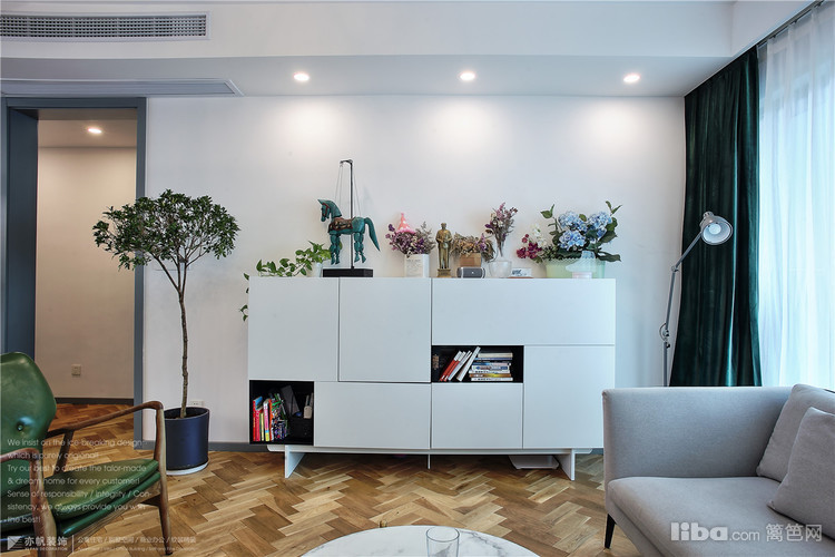 壁炉提升了家人相聚客厅时的温暖感,而对面的白色边柜可以放放孩子的书籍,玩具等等,