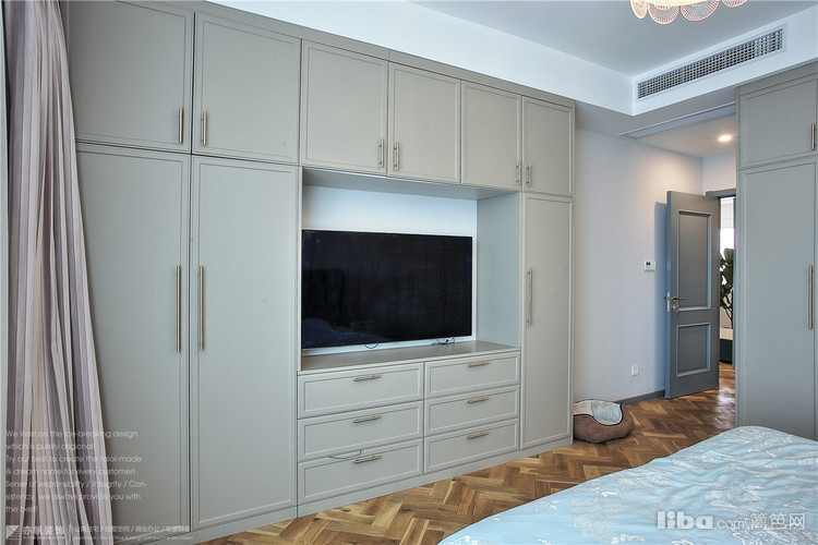 两面墙的定制柜体,推拉门设计,充分利用了空间