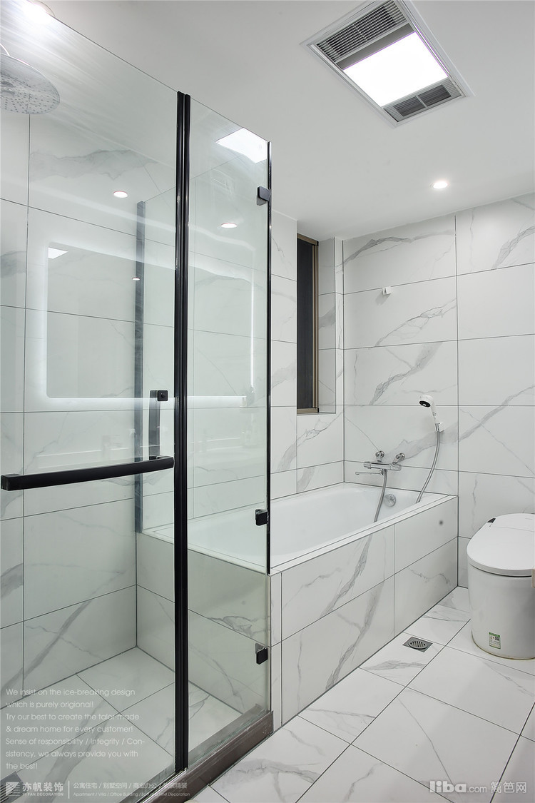 主卫选择云纹白瓷砖铺贴,地面规格30X30,墙面60X30,整洁干净方便打理;