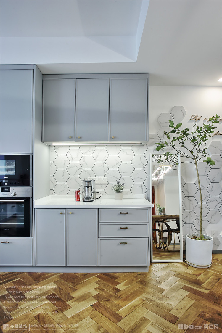 电器柜上下安置了烤箱和微波炉,操作方便又美观得狠~墙面多布置几个插座准保没错,都会派上用场哒~