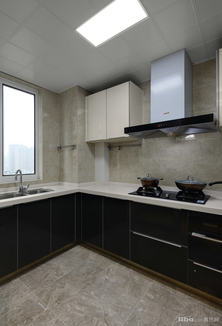大理石台面易于日常打理,定制的一排橱柜让厨房收纳空间丰富,便于整理。