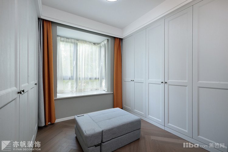 北面次卧由欧睿宇邦测量定制整体衣帽间,收纳力强大的同时,空间规划很是简单伶俐。