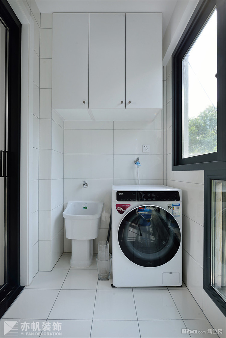另一侧是洗衣机以及拖把池的地盘,同时还是定制了吊柜作为洗晒用品的收纳归拢之处哦~
