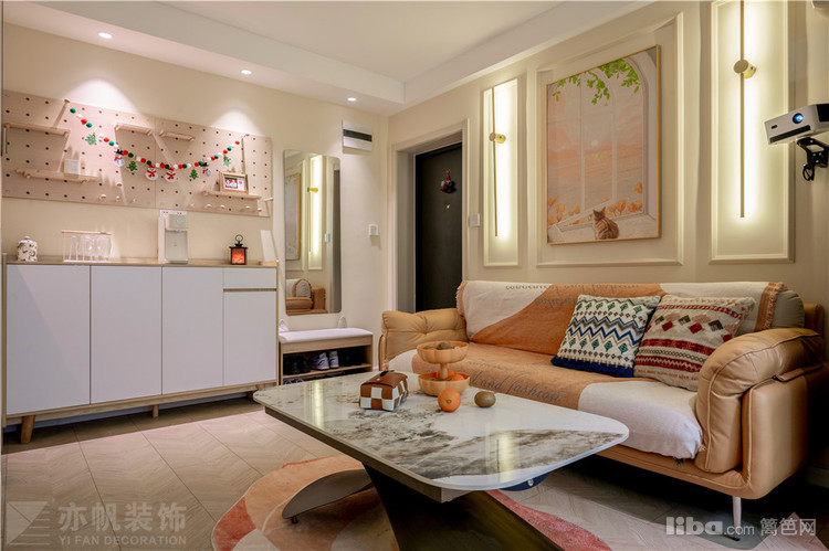 过道一览~米色+莫兰迪色,满眼干净清爽。面积虽小,大气满分!