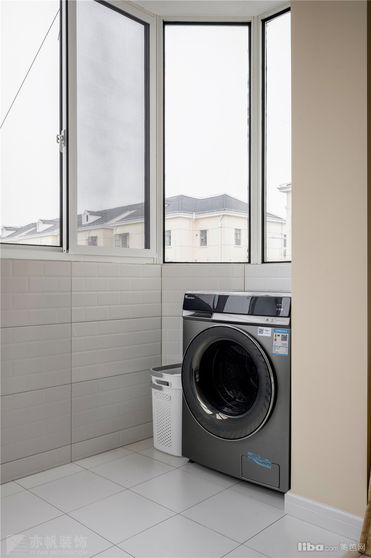 墙面以白色云纹横砖铺贴,干净清爽又好打理