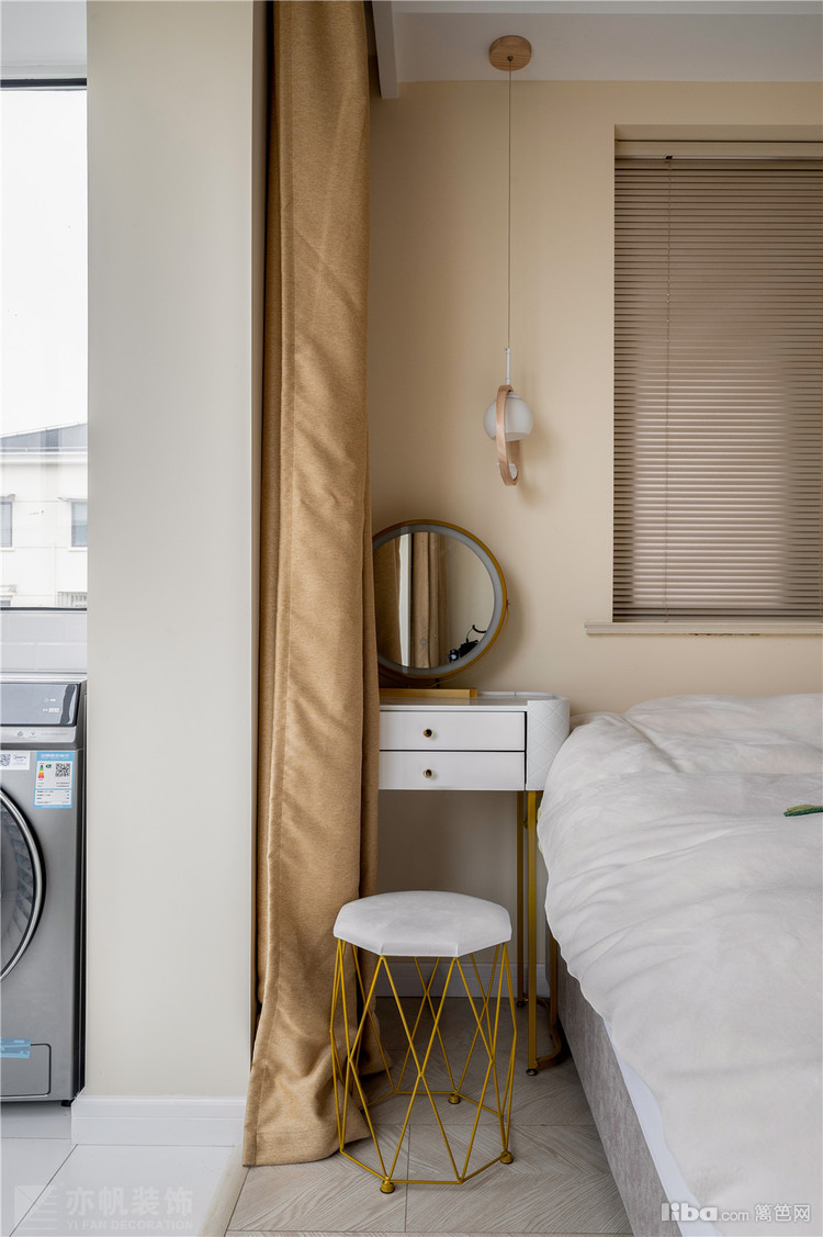 床头梳妆台是设计师帮着卡好尺寸采购的,简约时尚的线条,女主人很是满意呢