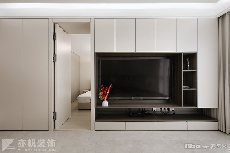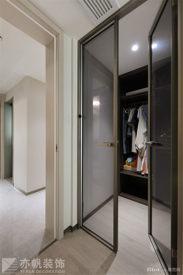 现代极简格调,利用客厅位置规划出衣帽间,收纳空间超级多的同时,确保整个空间的流畅感。