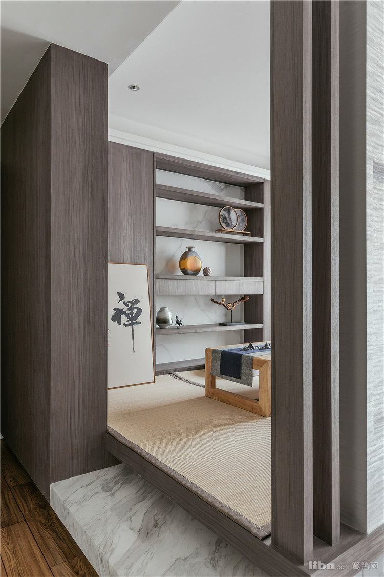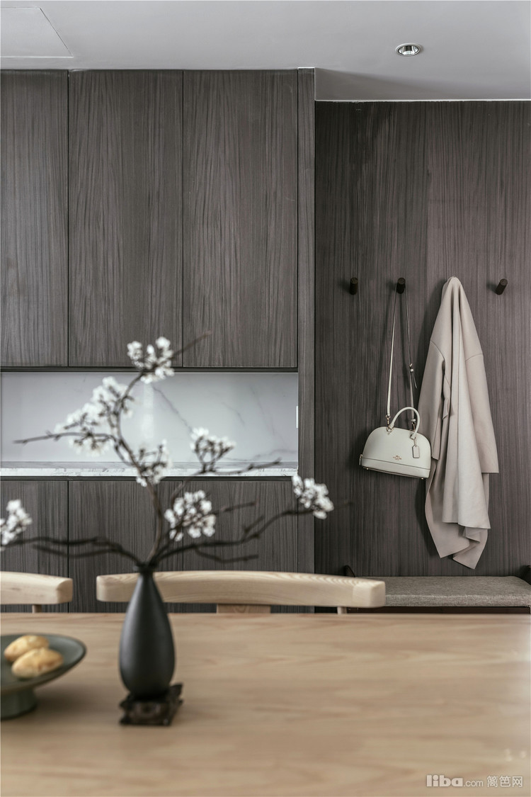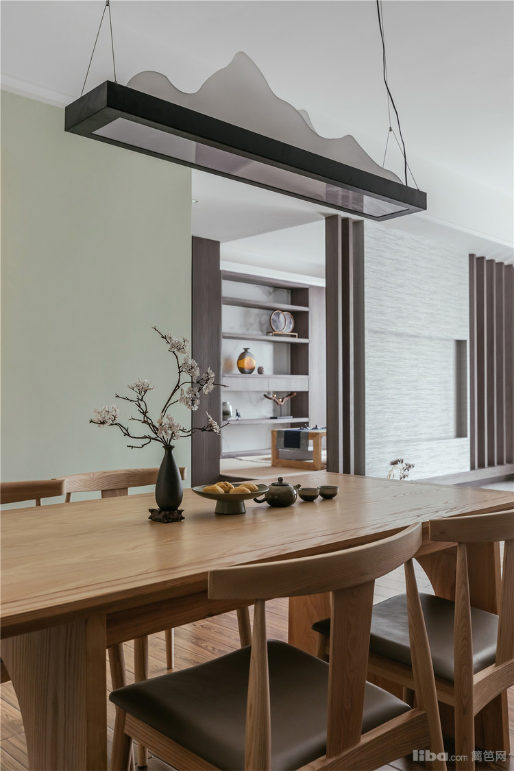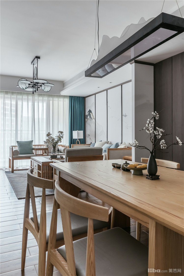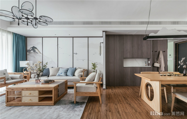 中式+原木的完美融合,搭配中式质感家具,整体是时尚又沉稳的居家格调。