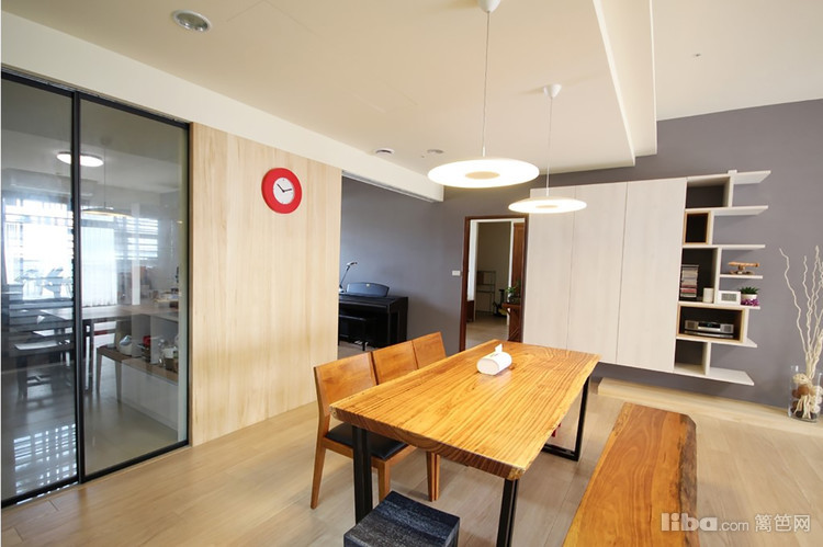设计师运用清玻璃、色彩及板材的构造,让光线游走在流畅而舒适的宽敞视觉里,搭配清浅的原木,很有质感