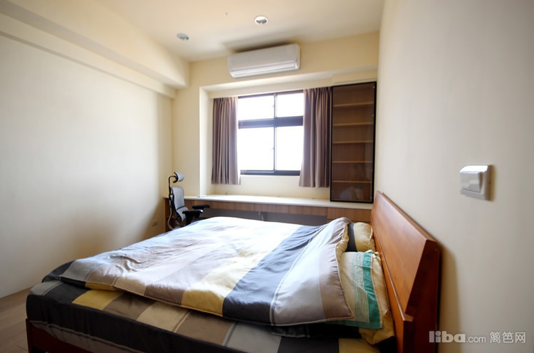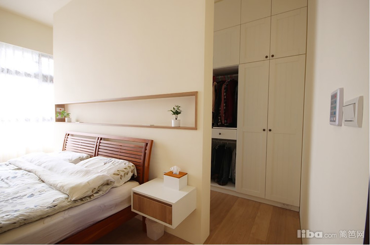 卧室主墙隔断,做了一面简洁的床头背景墙,从而形成了一个独立的衣帽间。