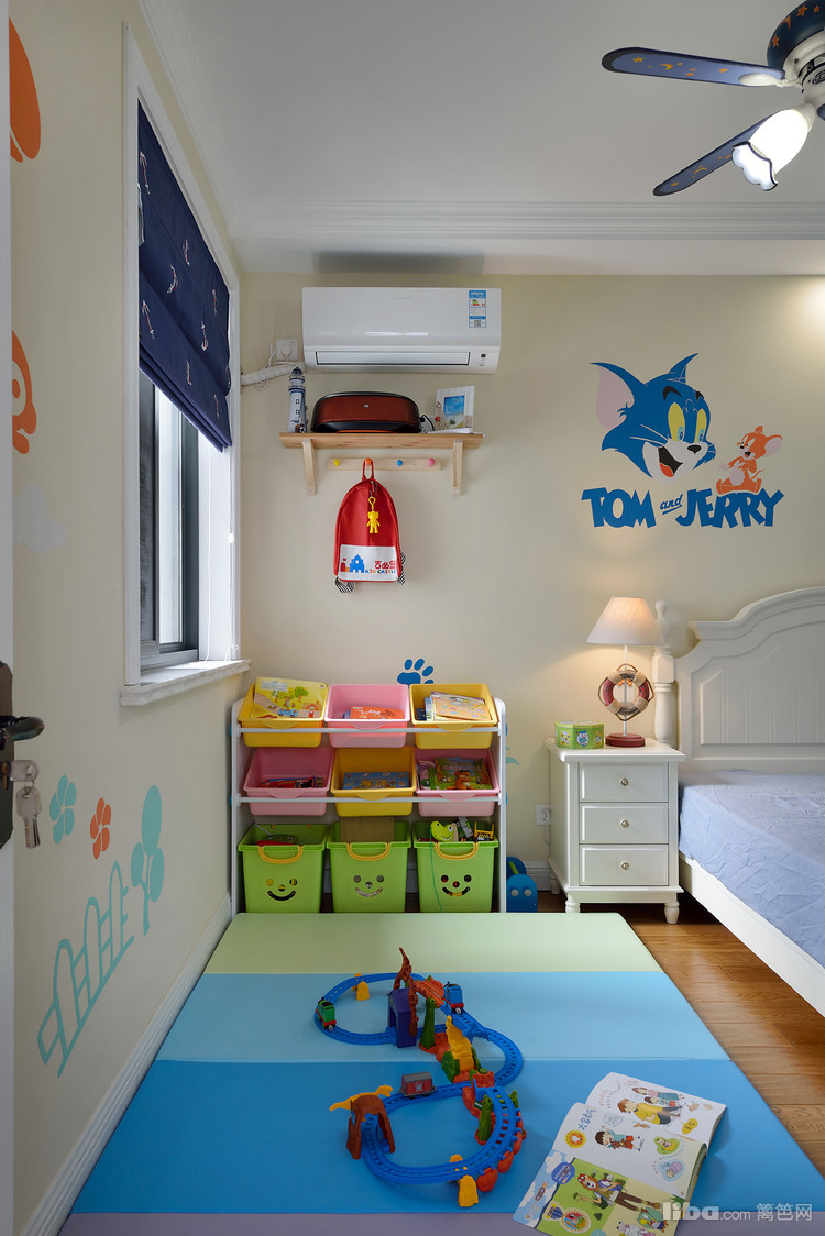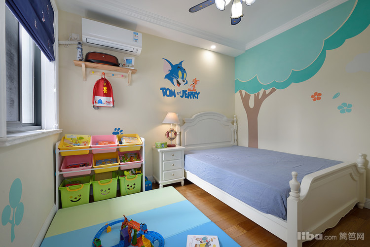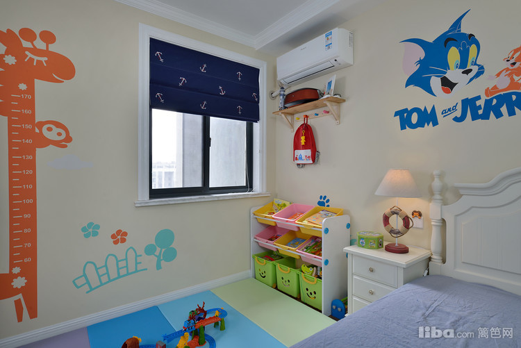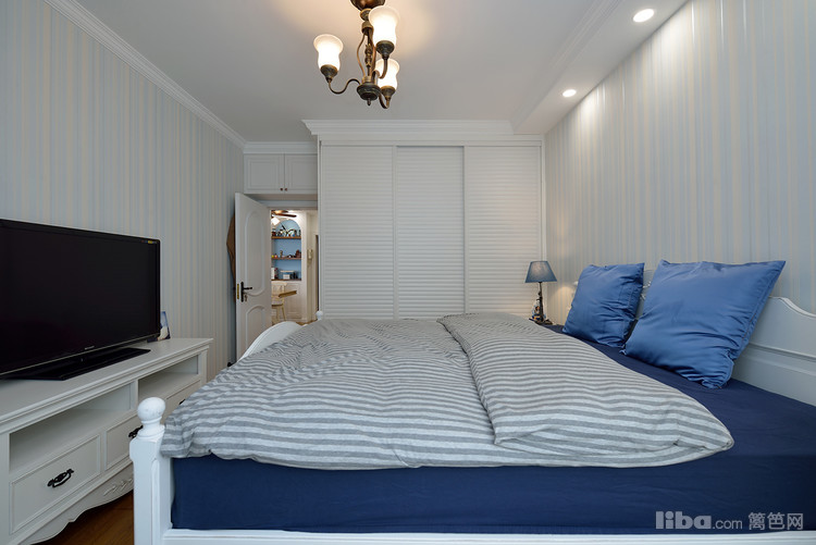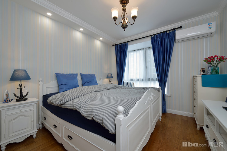 卧室整体造型的设计搭配深色调的色彩突出了田园的风格,定制的色调上呼应了地面的地中海的系列的墙面漆, 使整个空间的的风格相得益彰。