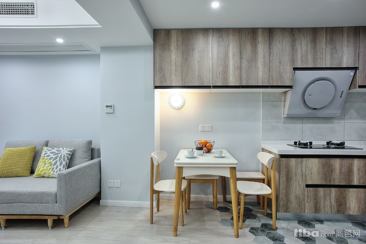 厨房的线条流畅,蜂巢造型的地砖为这里增添了设计感,也在无形之间划分了不同的功能区域。