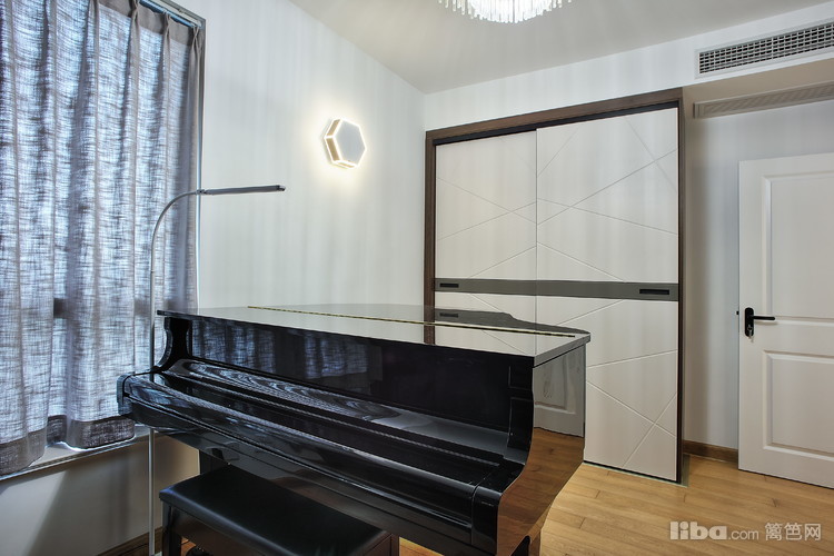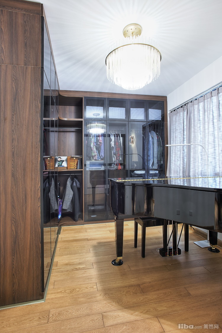 琴房同时也是步入式衣柜,两相结合增添几分优雅和华贵。
