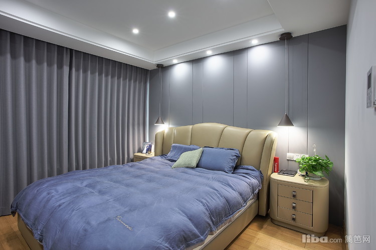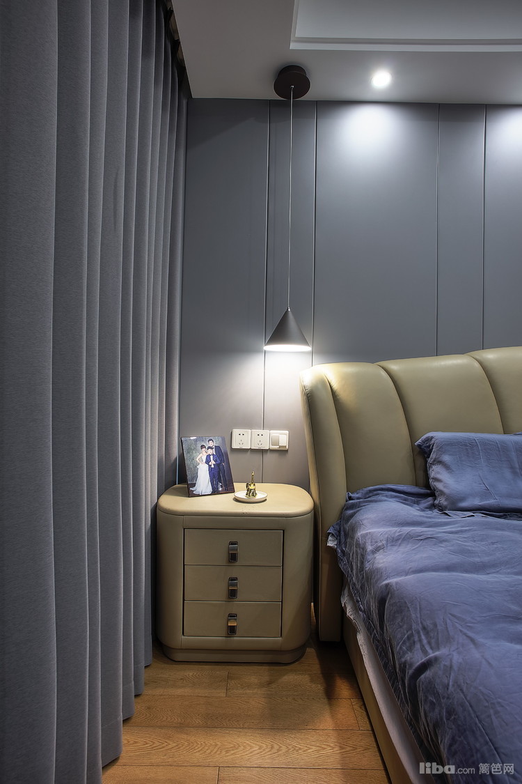 灰色和蓝色本就是十分稳重安静的颜色,很适合放在卧室,作为主色调。