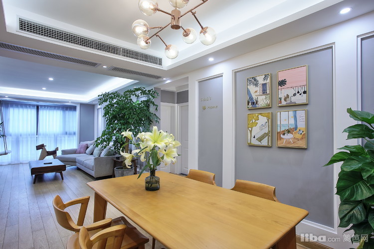 佐以北欧简约壁画,勾勒家庭成员相聚的欢乐氛围。
