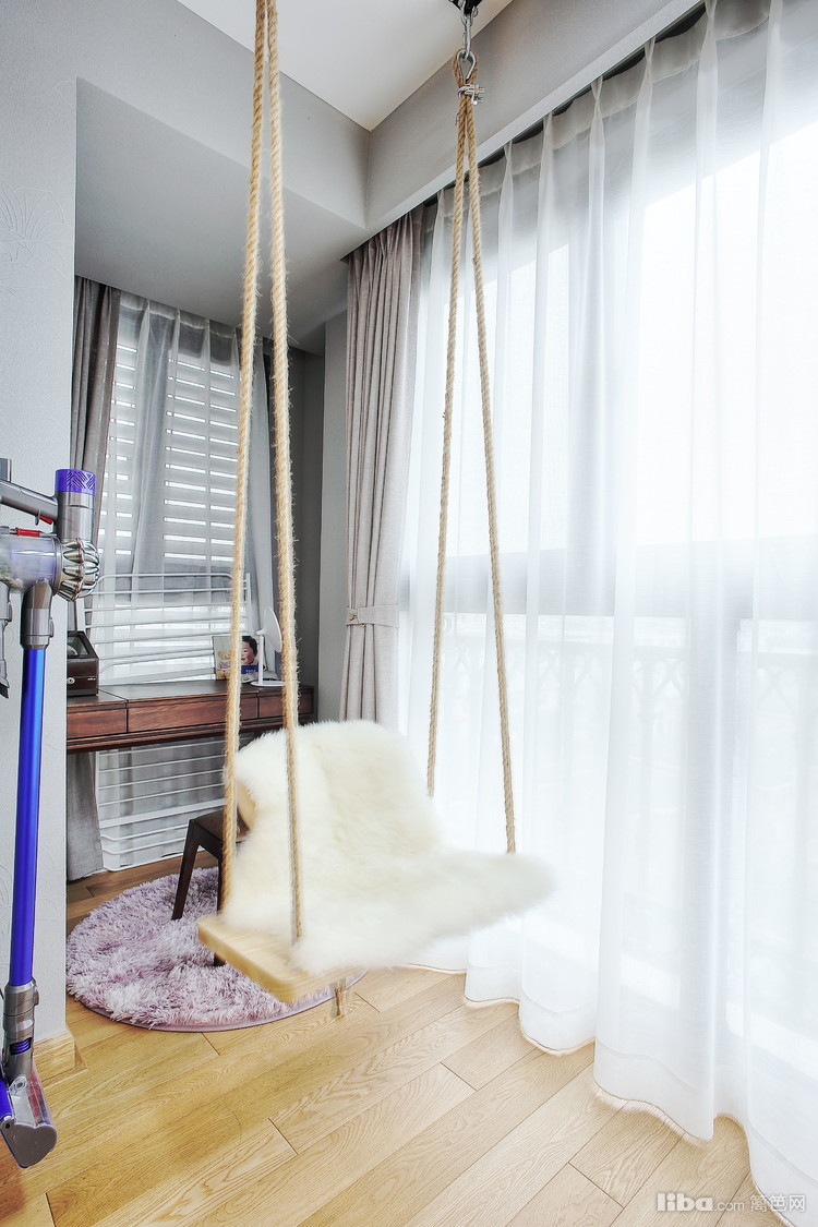 小小的秋千扎下是孩子的整个童年,两侧设置的座椅和桌面,方便居住者和孩子各自休息和放松。
