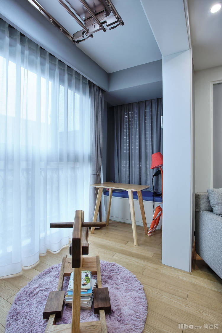 墙面延续客厅的灰色打底,同色窗帘以及北欧豆豆灯的点缀,简洁而温馨