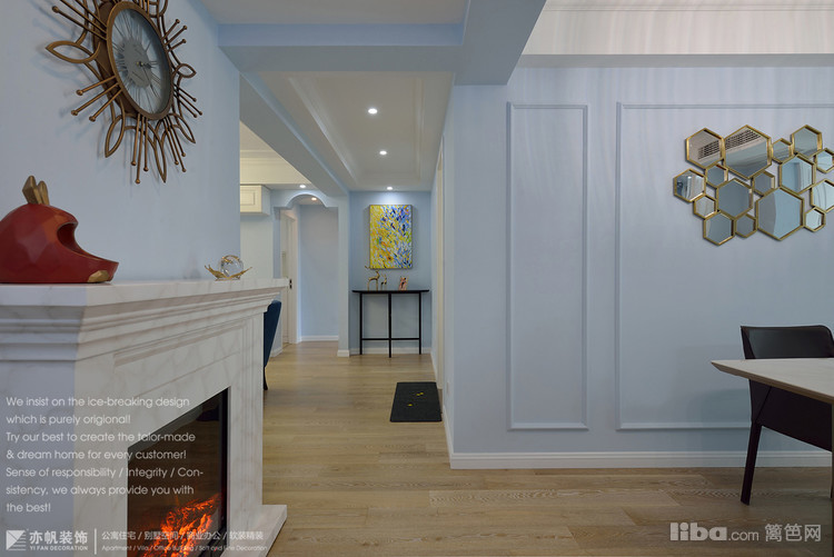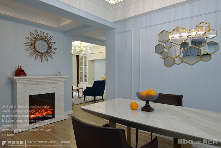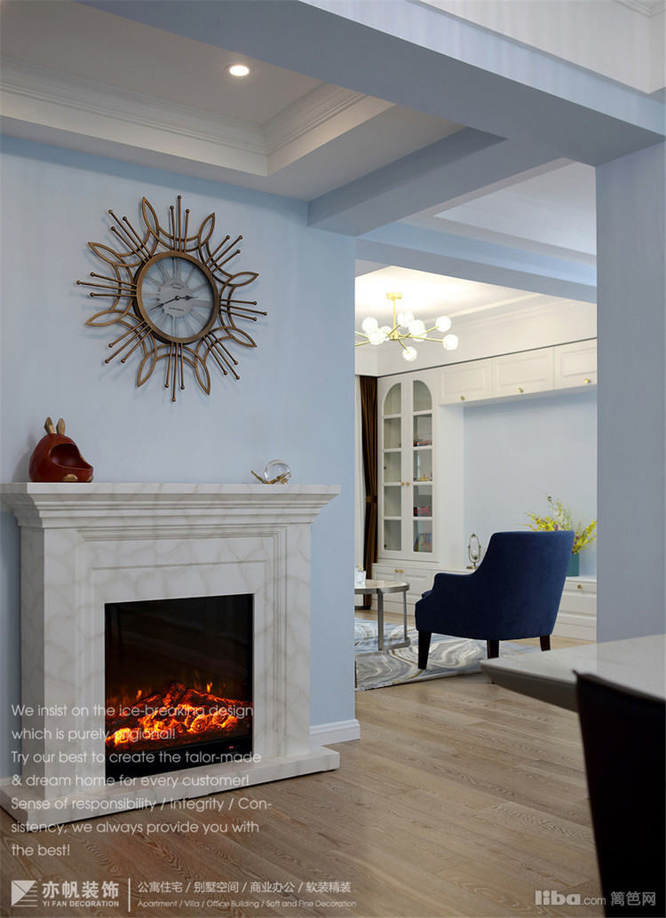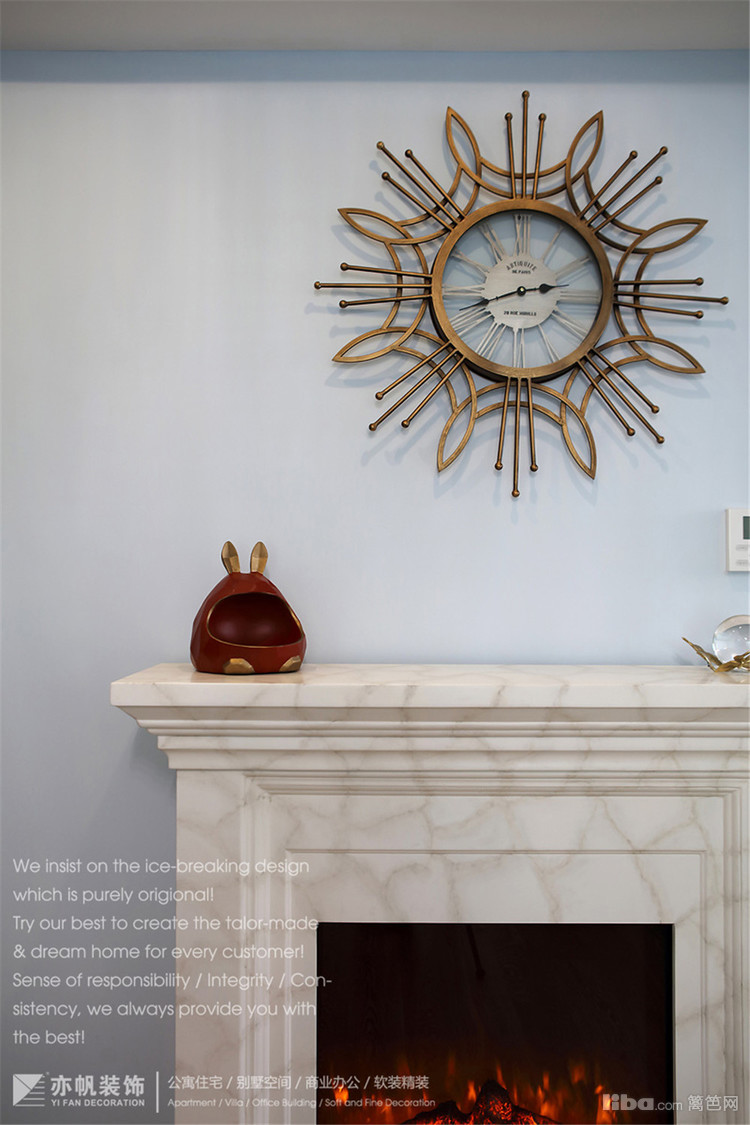 壁炉上方是富有创意的美式时钟,静音设计,轻奢质感。参考价格在500-700元之间。