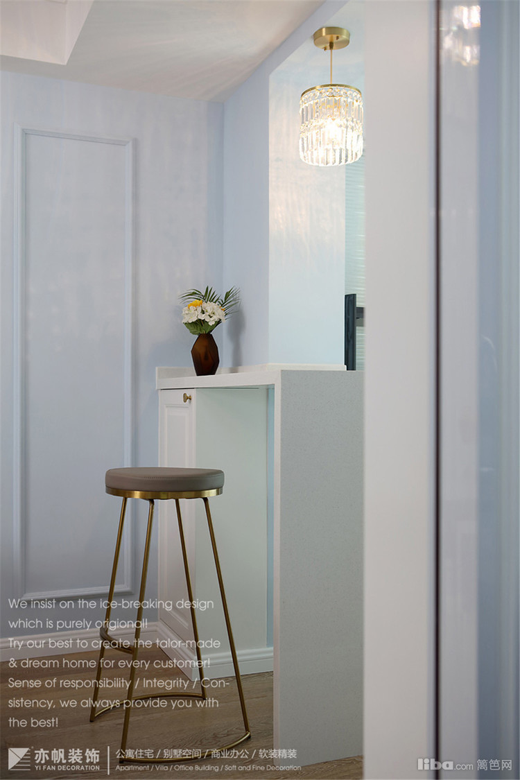 北阳台是电器柜,蒸箱+烤箱、水晶吊灯遇上精致吧台,给孩子来个家庭BBQ,也是很不错的周末度假方式~