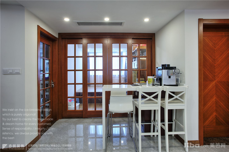 咖啡吧一侧设计的水池,则与厨房的油腻有效区分。干净便捷。