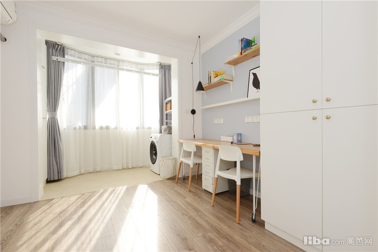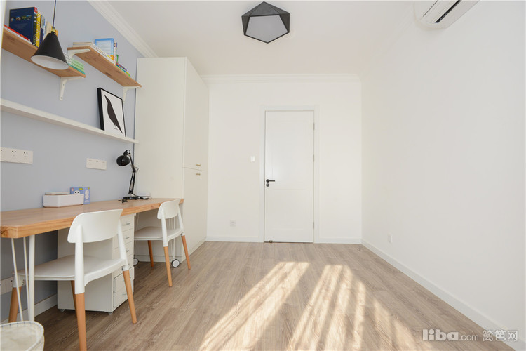 以黑白两色为主调,不加入其它任何颜色。空间给人的感觉干净明朗,绝无杂乱之感。此外,白、黑、棕、灰和淡蓝等颜色都是北欧风格装饰中常使用到的设计风格。